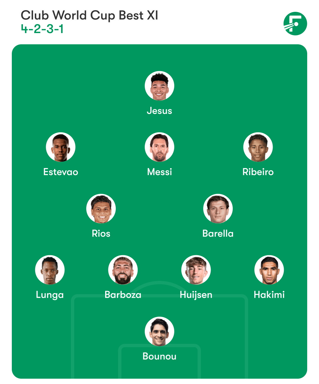 Playmakers: Estêvão, Palmeiras; Lionel Messi, Inter Miami; Lucas Ribeiro Costa, Mamelodi Sundowns